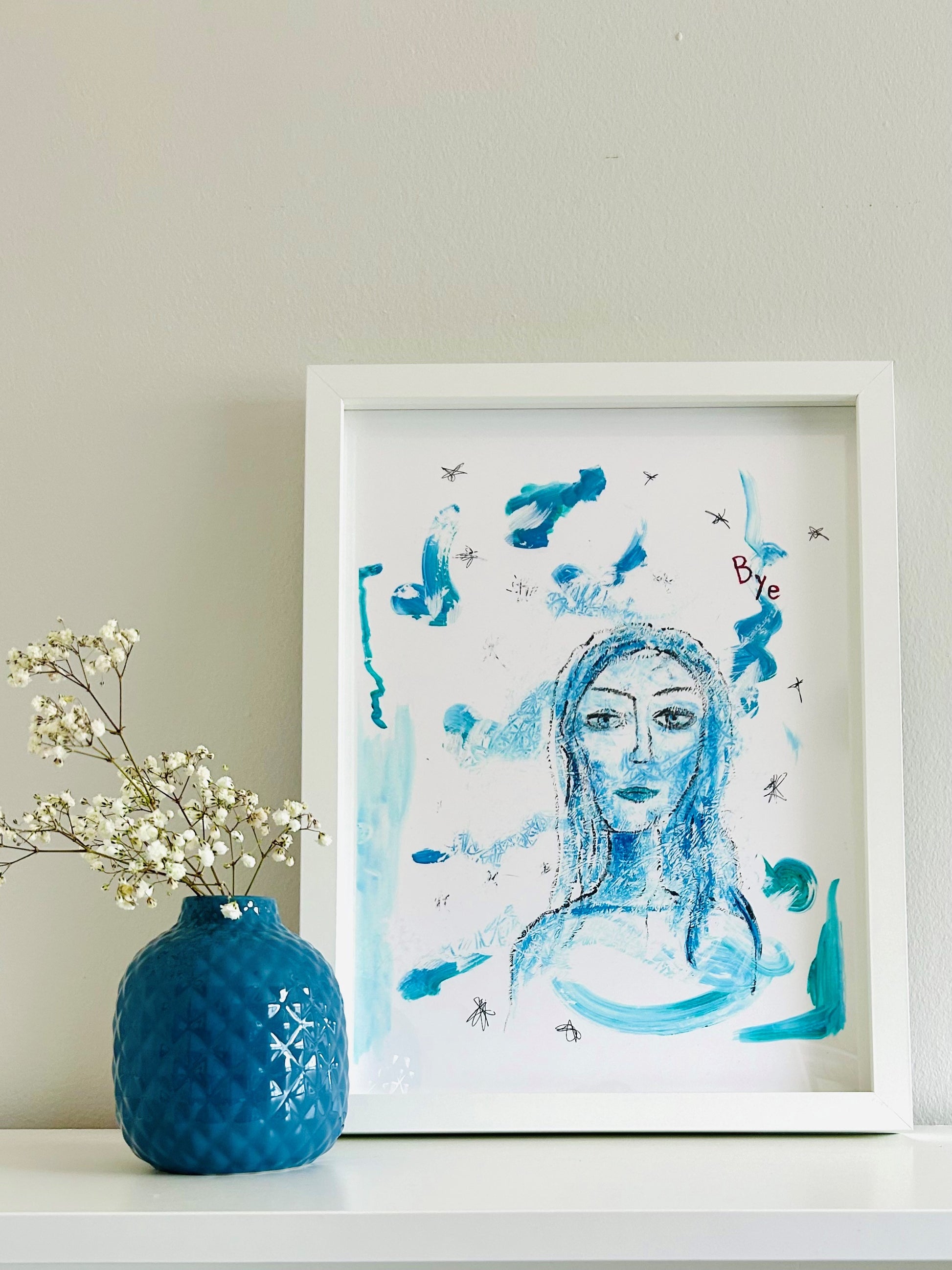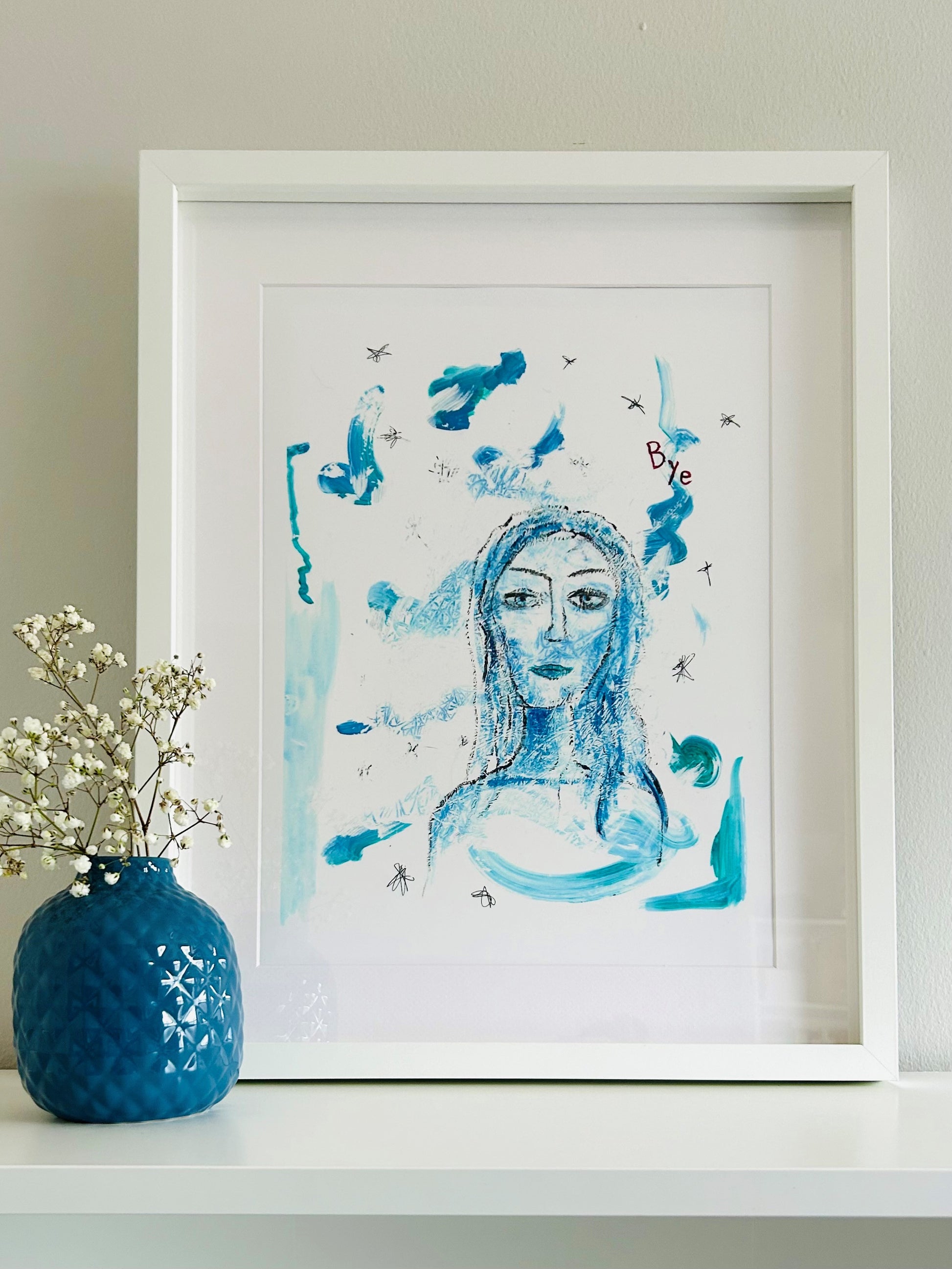 Print is shown in 12x16 in a white Ikea Rodalm frame sized 12x16 (31x41cm) with no mat, and in a white Ikea Rodalm frame sized 16x20 (41x51cm) with the mat.